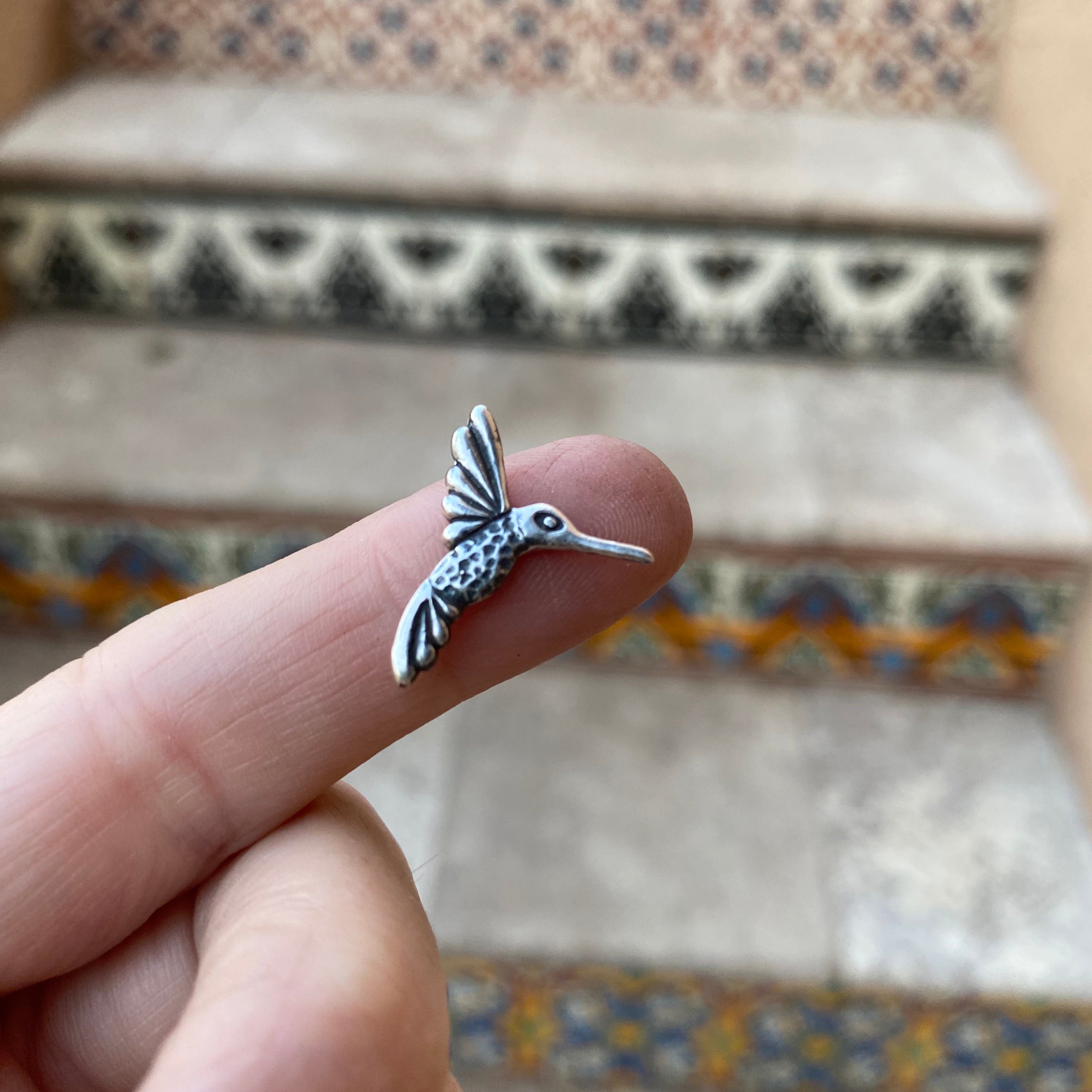 Bring a little desert magic to your next jewelry piece with this sterling silver hummingbird. It was carved on the front and back side so you can see the a mirrored image if you flip it over. This piece can be used as a charm by soldering a jump ring on it, or sweat solder to your base while soldering your next cabochon ring or pendant! Approximately 16x20 mm. Price per each.