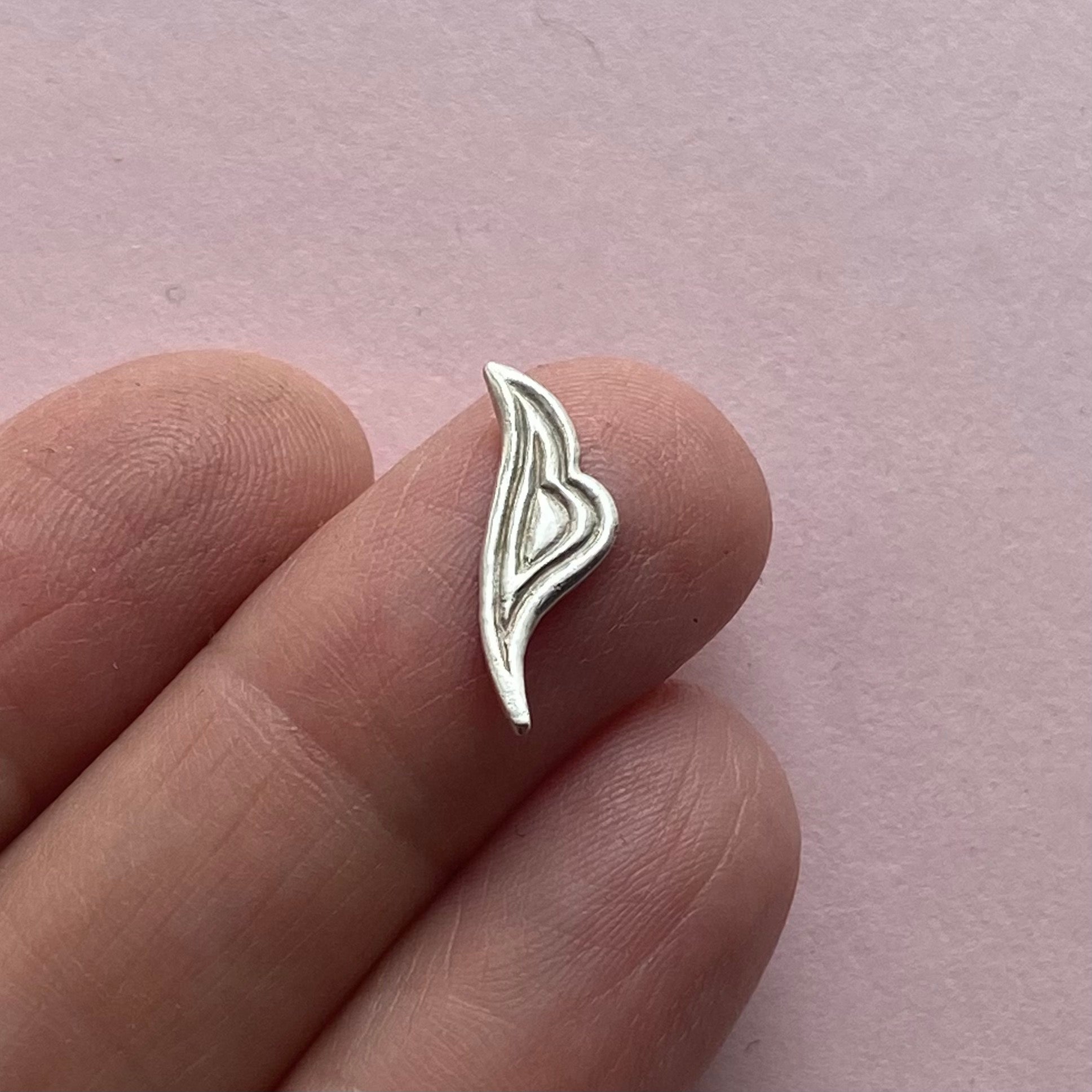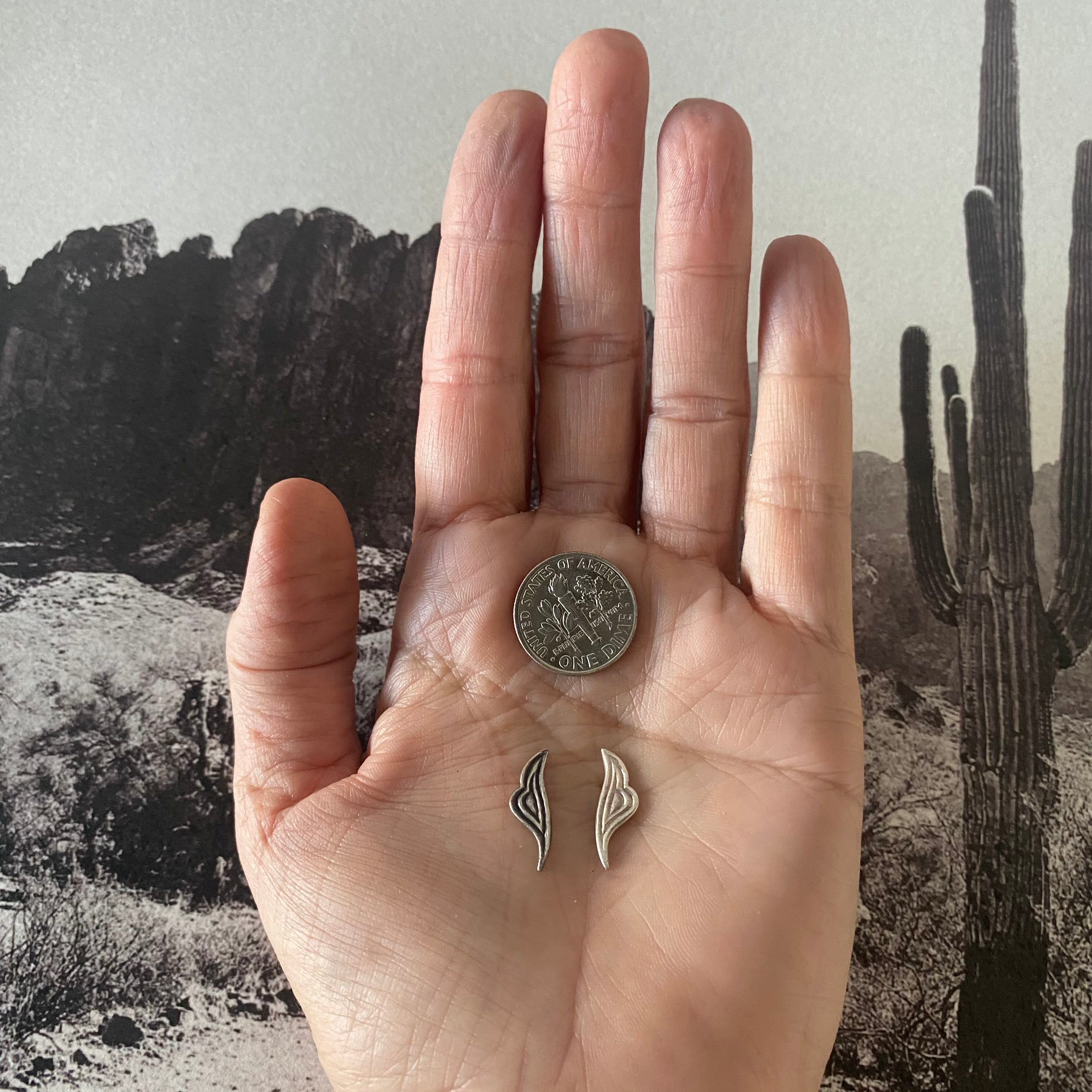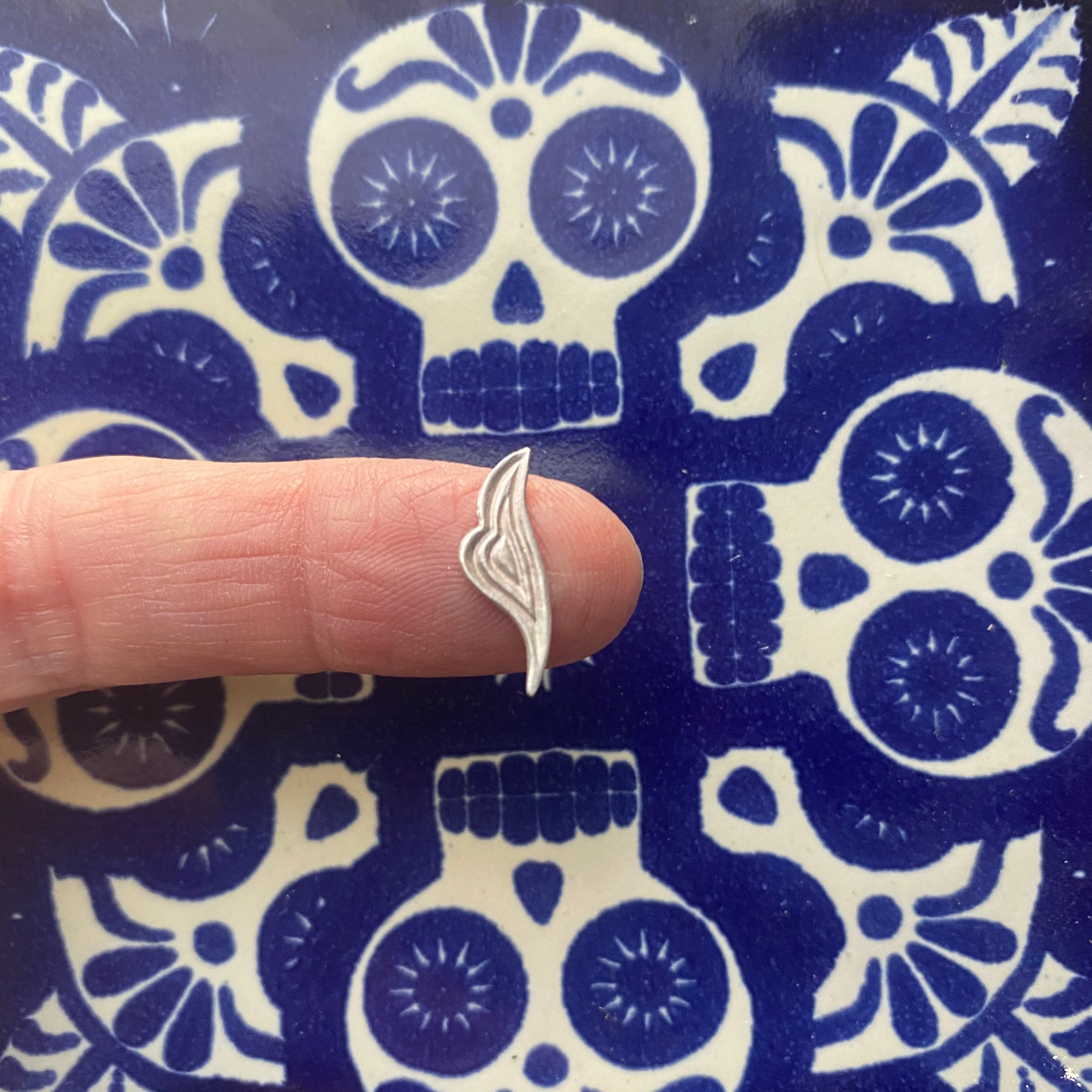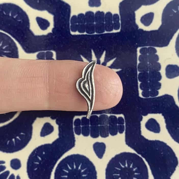 Use this elegant silver leaf in a cuff bracelet, ring or other silversmithing project to stand out. This elegant leaf was designed to border your cabochon, both sides have a pattern on them, fo you can flip it over and see the same beautiful design on the back side. Use two for a lovely mirror effect. It was hand carved at our studio in Phoenix, AZ. Price per piece.