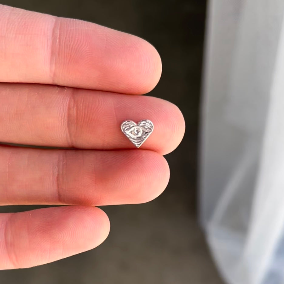 Sterling silver eye heart casting. This heart is carved on both sides with a matching pattern so you won’t miss detail on the backside. Price per piece.
