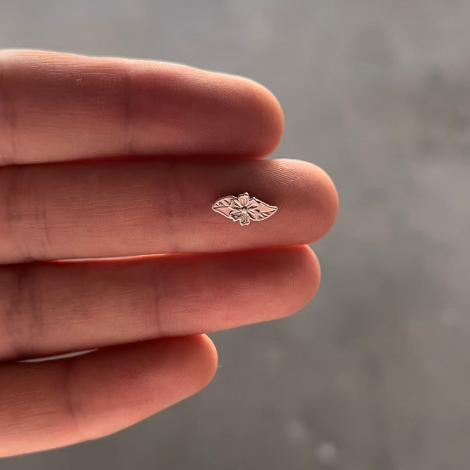 Sterling silver Hawaiian flower. Cast flower with leaves on either side. Price per piece.