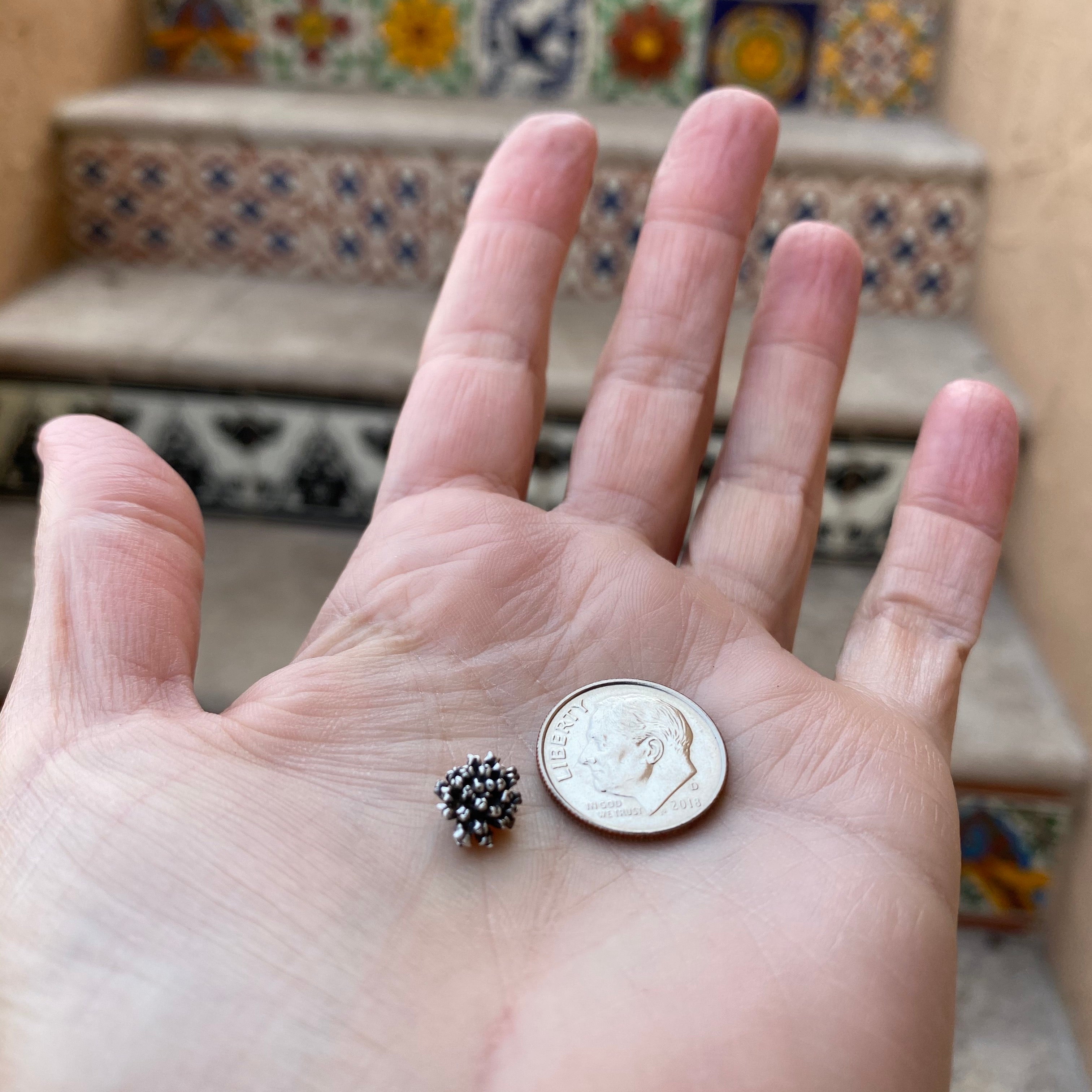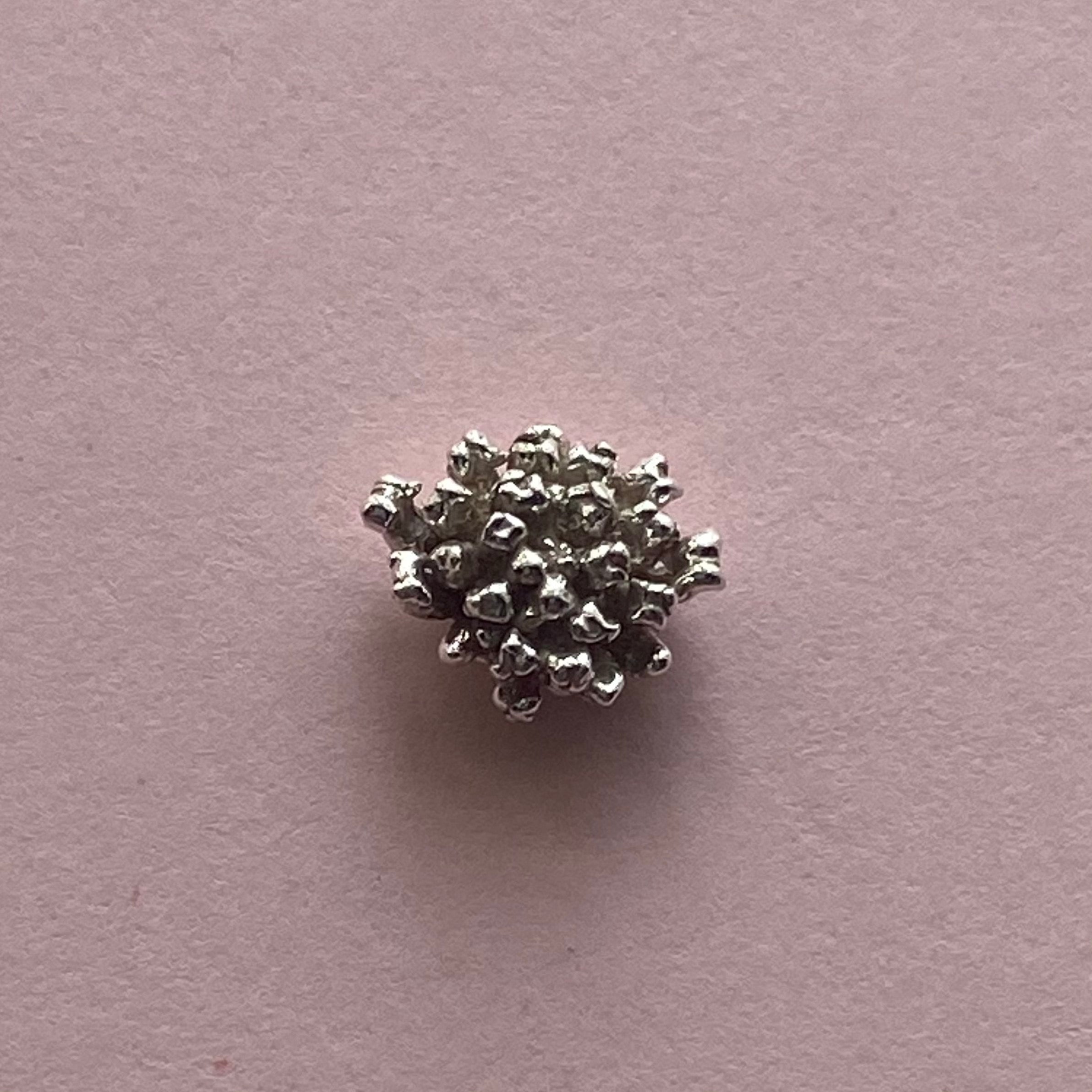 Silver cast pom pom flower. Add these sweet delicate flowers to your next jewelry design. These flowers are uniquely beautiful and will add that special detail to your next design.  Price per piece.