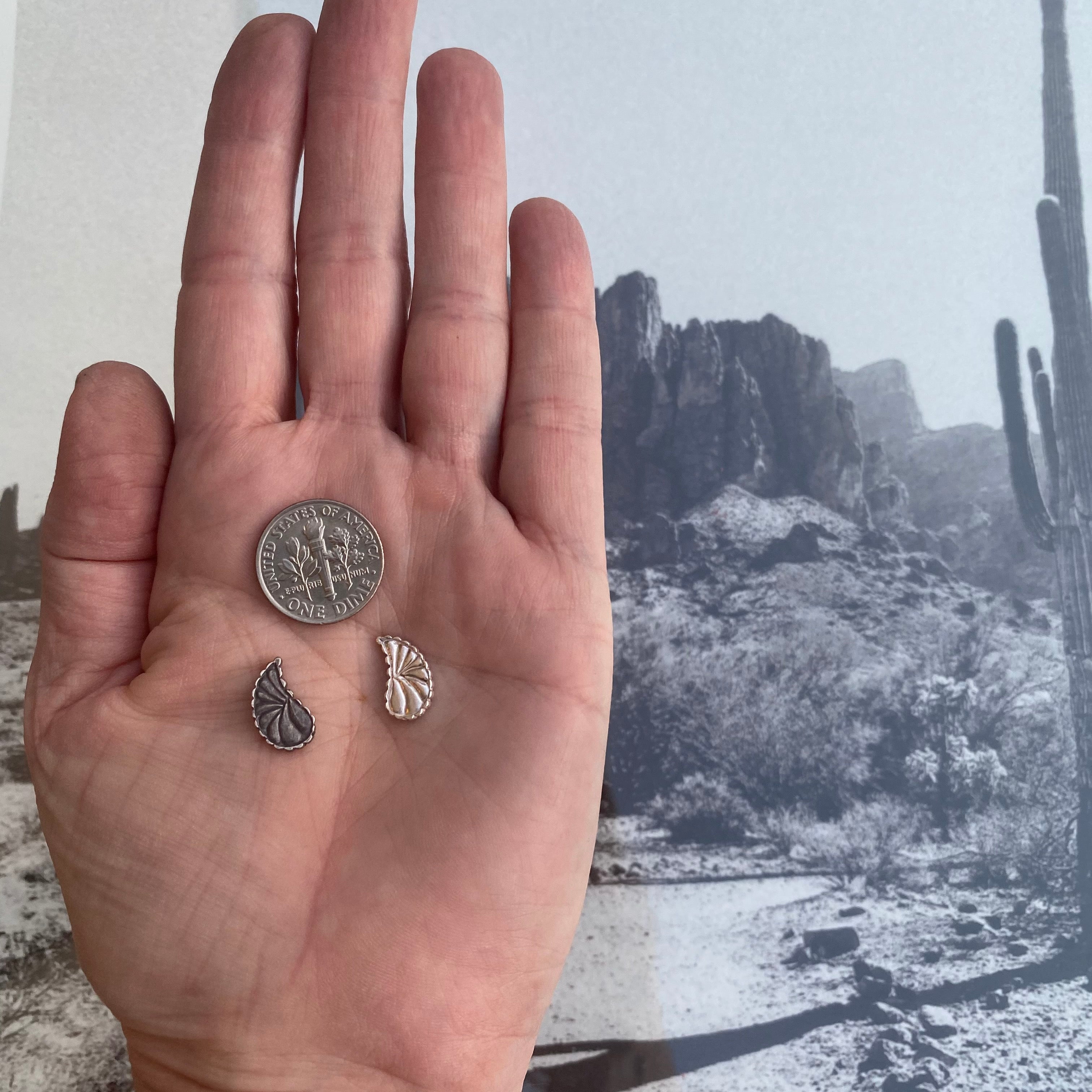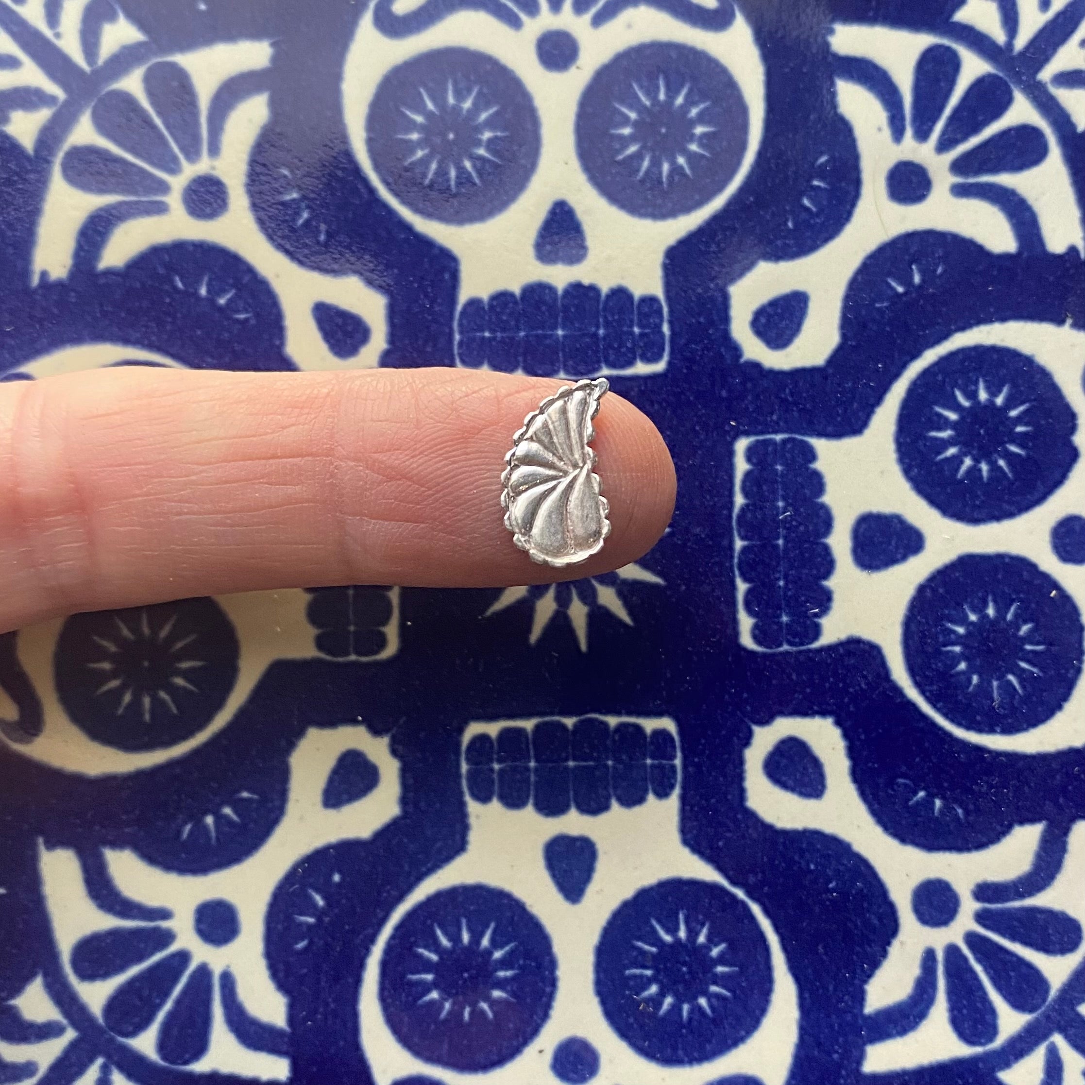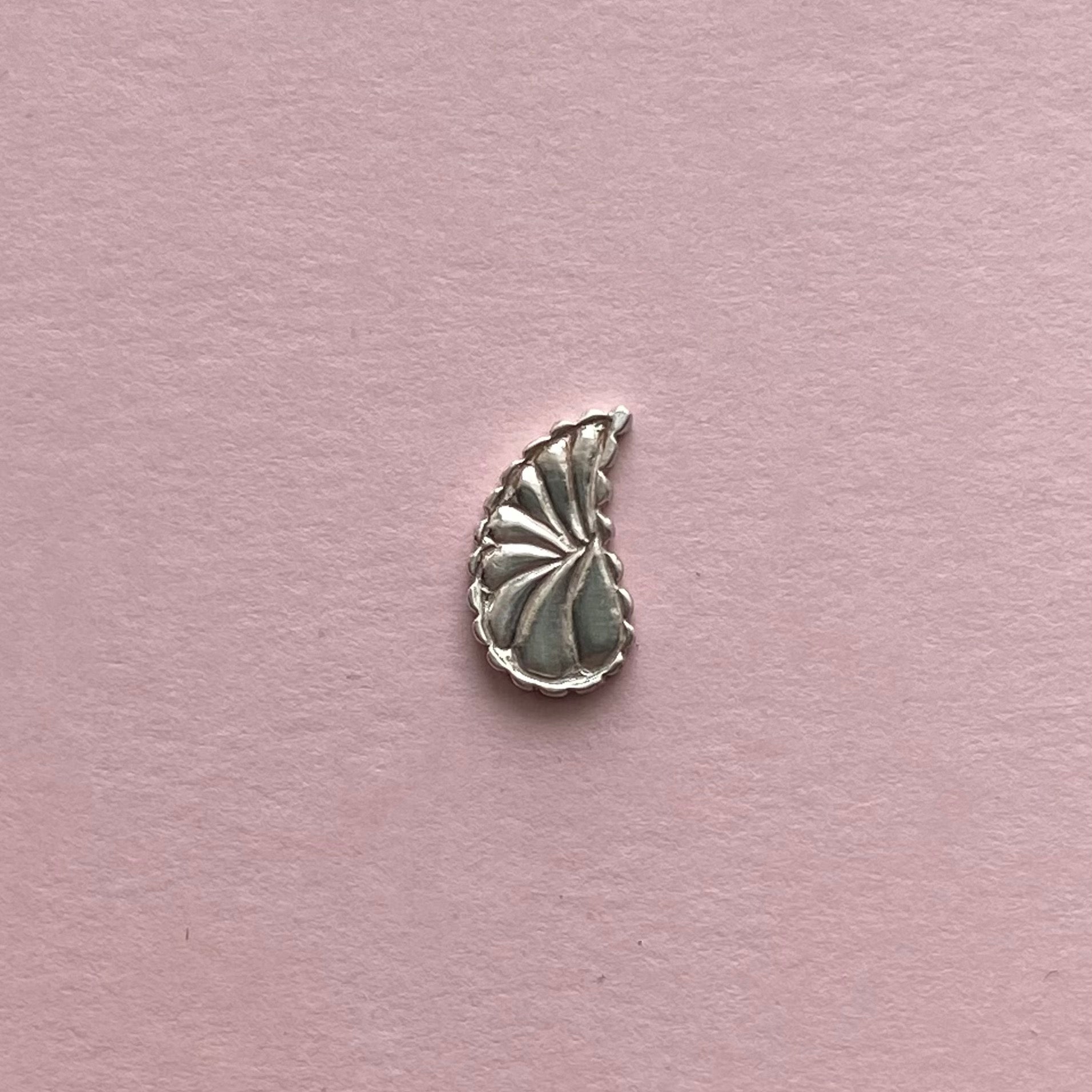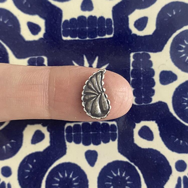Sterling silver embellishment casting. This detailed embellishment was inspired by the classic bohemian print textile. This silver accent is perfect for giving your next cabochon ring or pendant more detail and dimension. The pattern is on both sides allowing for a perfect mirrored image when you use two. Price per each.