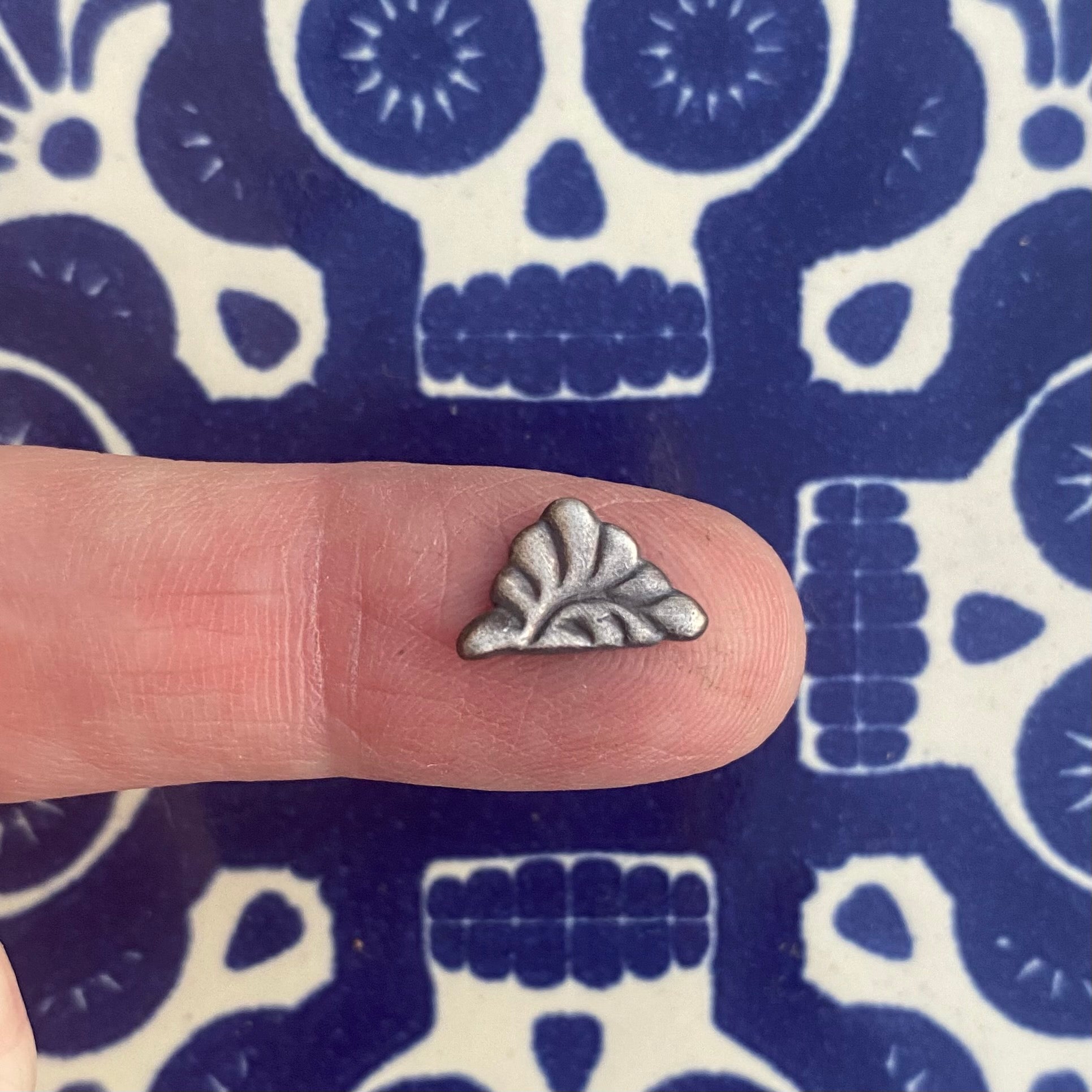 Sterling silver embellishment casting. This detailed embellishment was inspired by the Talavera Tiles imported from Mexico. This silver accent is perfect for giving your next cabochon ring or pendant more detail and dimension. The pattern and raised surface is just on the front, so it can easily be soldered up against your bezel. Price per each.