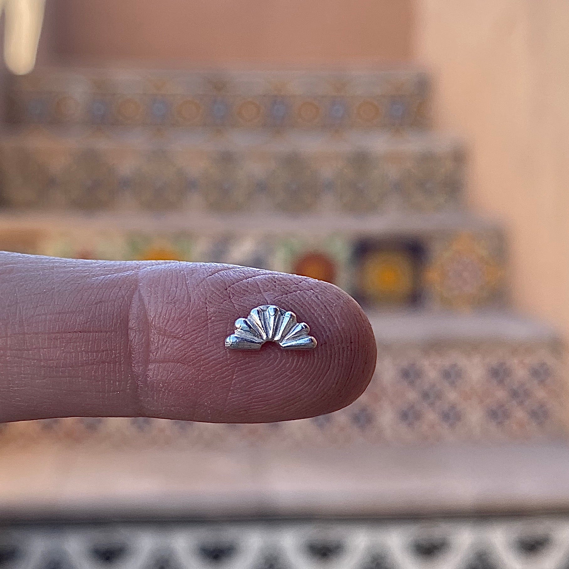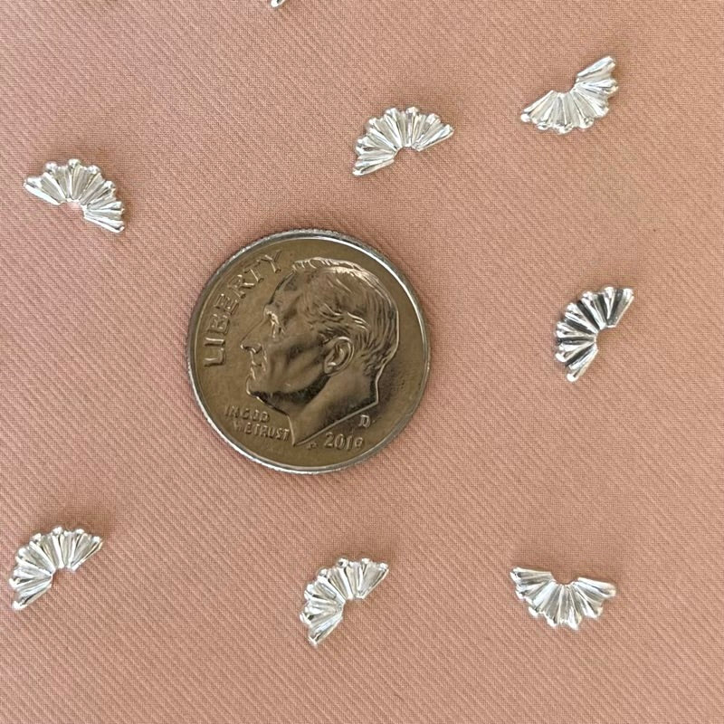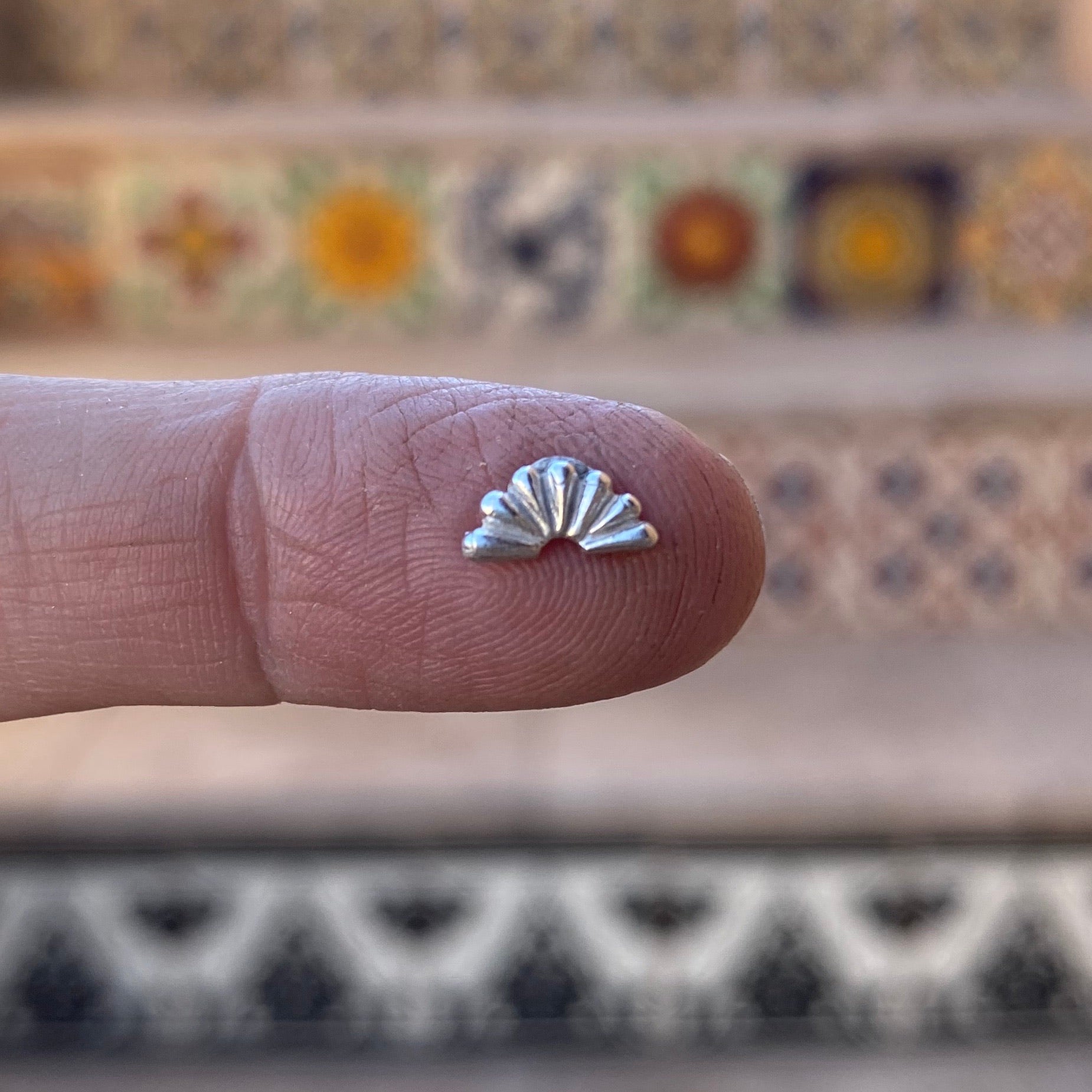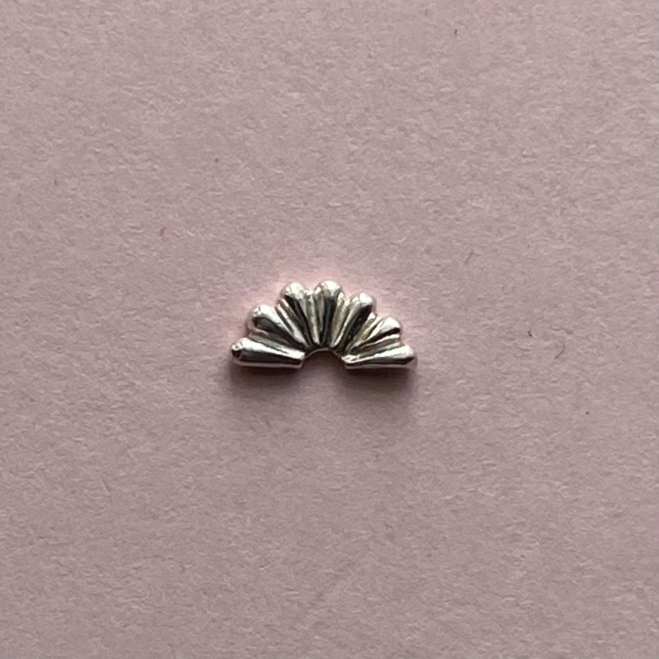 Setting sun embellishment casting. This delicate embellishment is perfect for giving your next cabochon ring or pendant more detail. This accent piece creates the look of stamping with more dimension. The pattern and raised surface is just on the front, so it can easily be soldered up against your bezel. Approximately 4 x 8mm. Price per each.